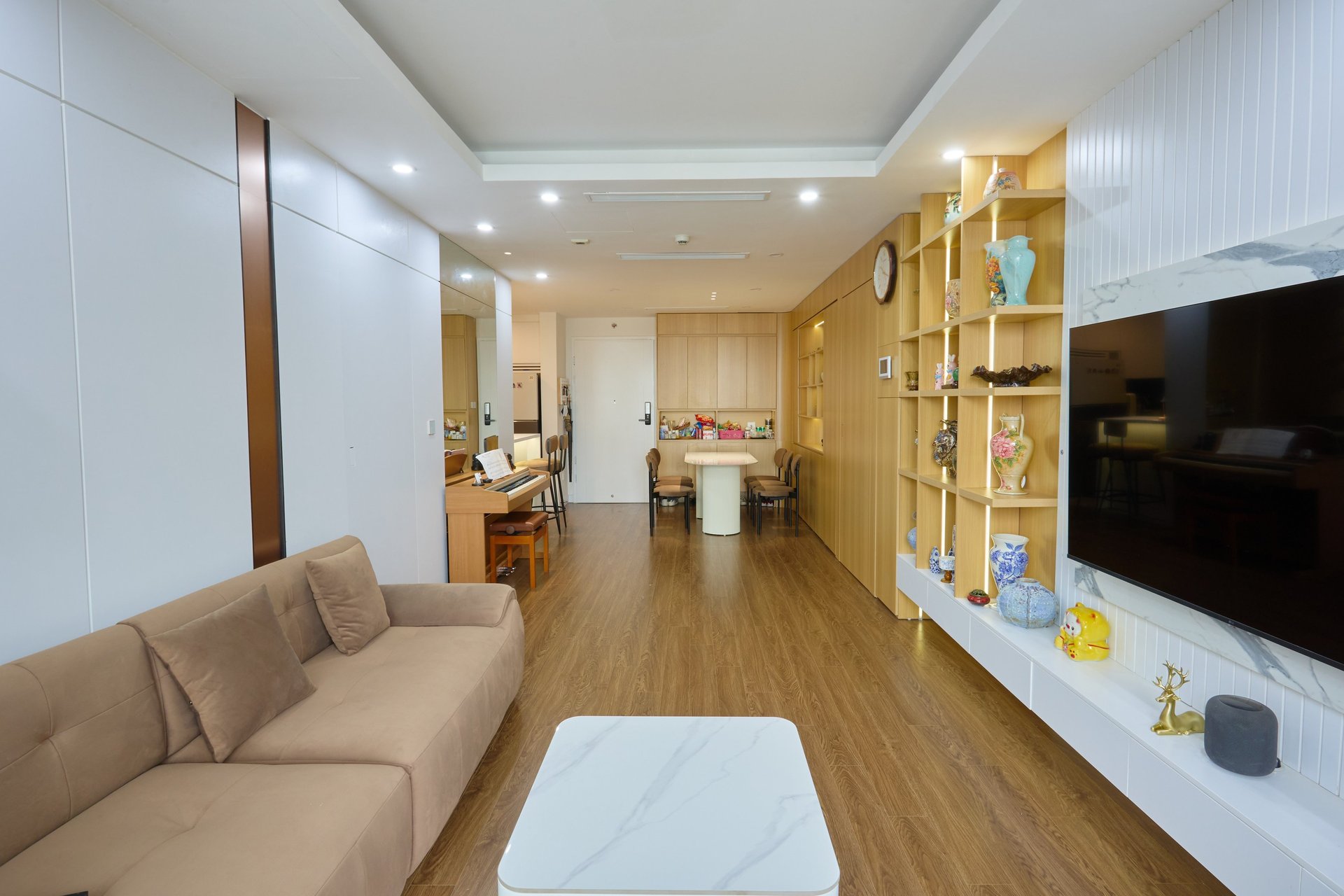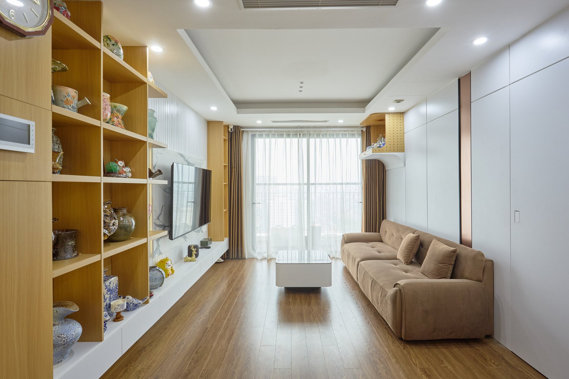 Với diện tích 94m2, căn hộ 3 phòng ngủ của Mr. Giang đã được TCN VINA thiết kế và thi công một cách khéo léo, tối ưu hóa từng không gian để mang lại sự tiện nghi và ấm cúng cho gia đình. Căn hộ toát lên vẻ hiện đại, nhẹ nhàng và sang trọng nhờ sự kết hợp hài hòa giữa các gam màu và chất liệu.